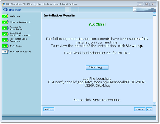 Browse to the bmc_products folder where the files have been extracted (both Tivoli Workload Scheduler KM for PATROL and the Common Installer).