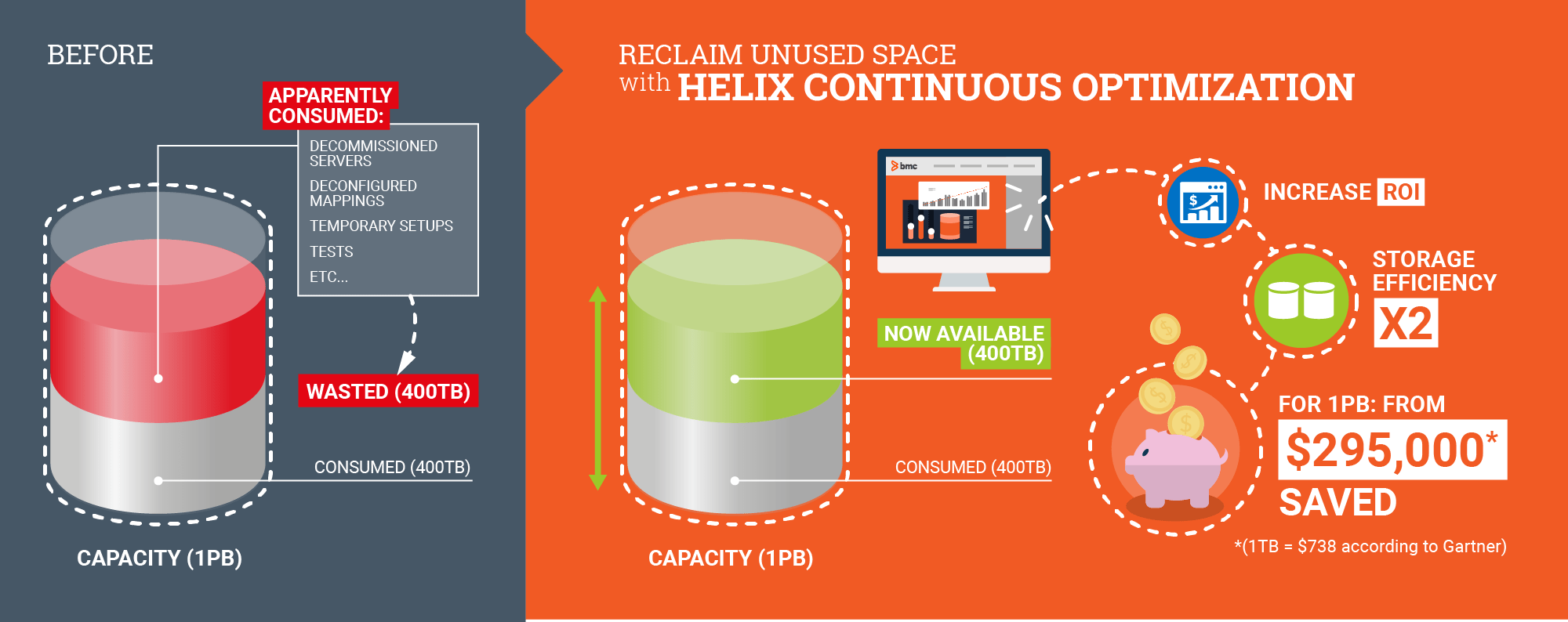 With BMC Helix Continuous Optimization and Storage All-in-One ETL, organizations turn unpredictable growth and hidden waste into measurable savings, higher performance, and smarter capacity planning.