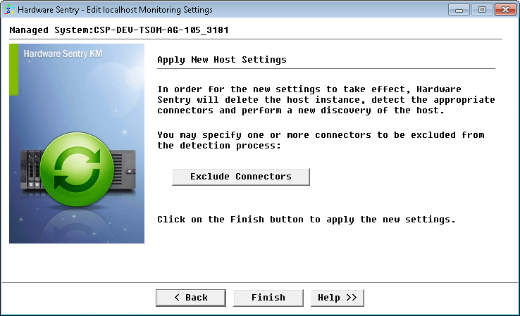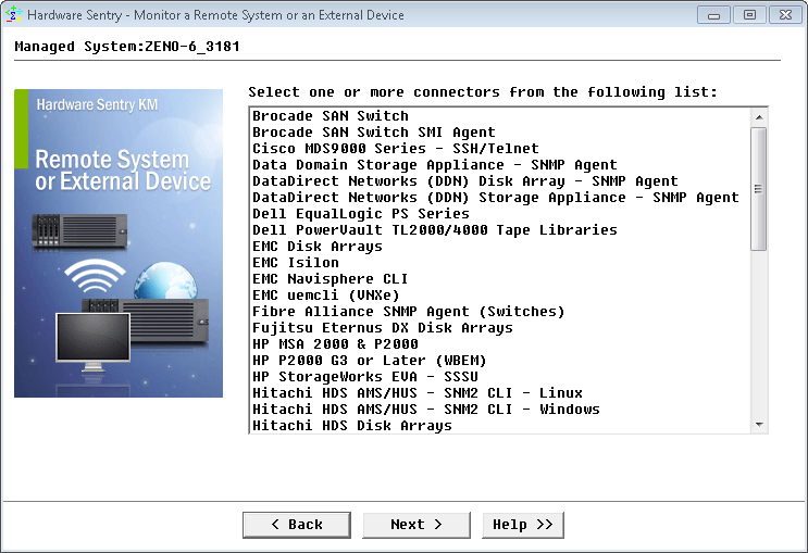 Select the connectors Hardware Sentry will use to monitor the host. You can refer to the list of available connectors to find out which connectors are suitable for each system.