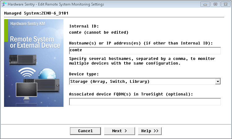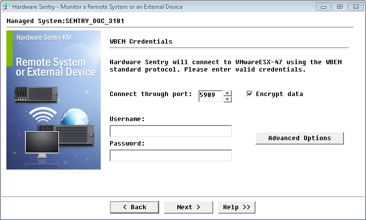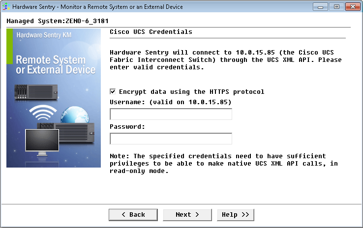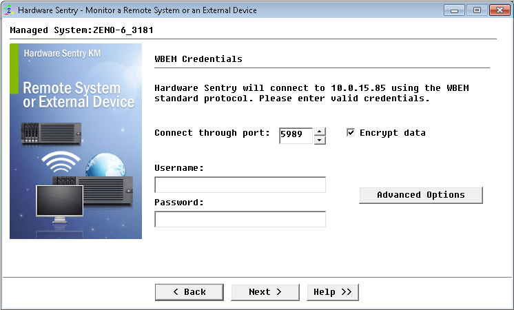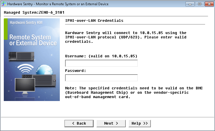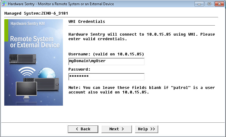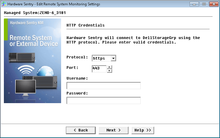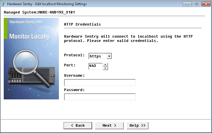 - Depending on the monitors selected and the protocol used to collect hardware information, you may have to configure the connection settings.