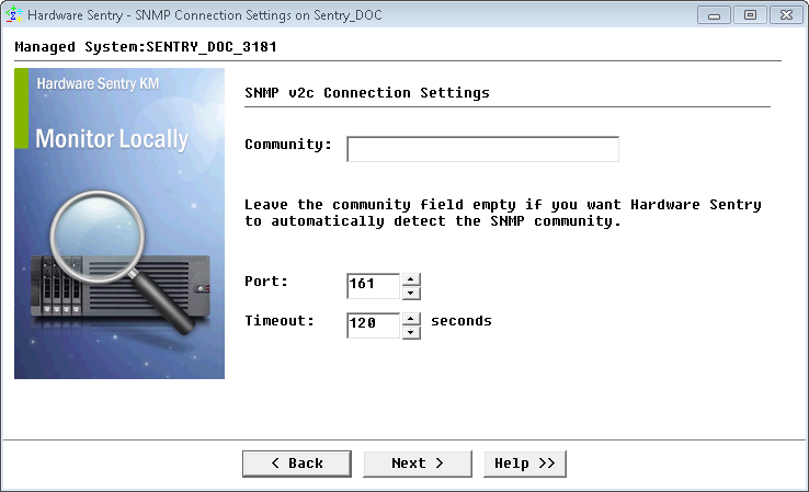 - the Community to be used. Leave blank if you want Hardware Sentry to automatically detect the SNMP community.