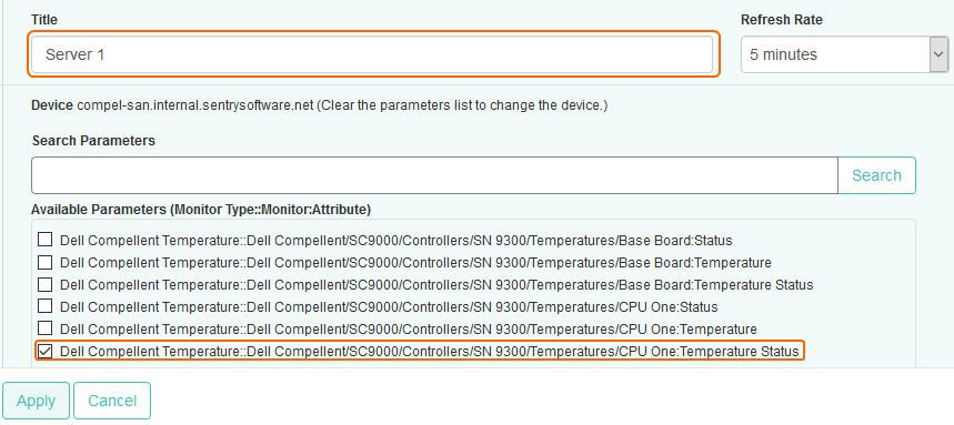 - Select the Temperature Status parameter of the component you wish to monitor. Click Apply.