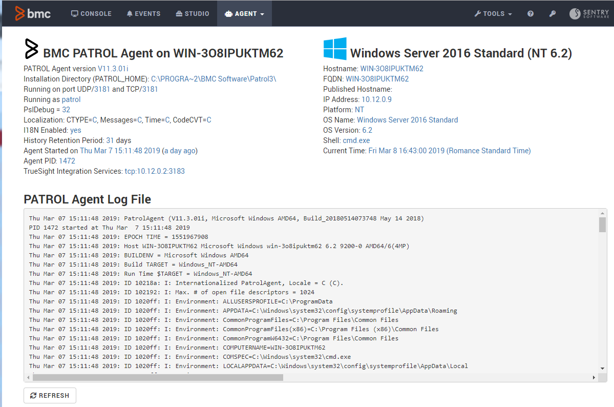 The BMC patch 11.0.00.01: Patch 1 for BMC PATROL Agent 11.0.00 must be installed on PATROL Agent v11.0.00i to use any version of Monitoring Studio X KM for PATROL. Version 11.0.00i of the PATROL Agent on Windows prevents Monitoring Studio X KM for PATROL from operating properly. While apparently successfully loaded, Monitoring Studio X KM for PATROL fails to start and cannot monitor applications.