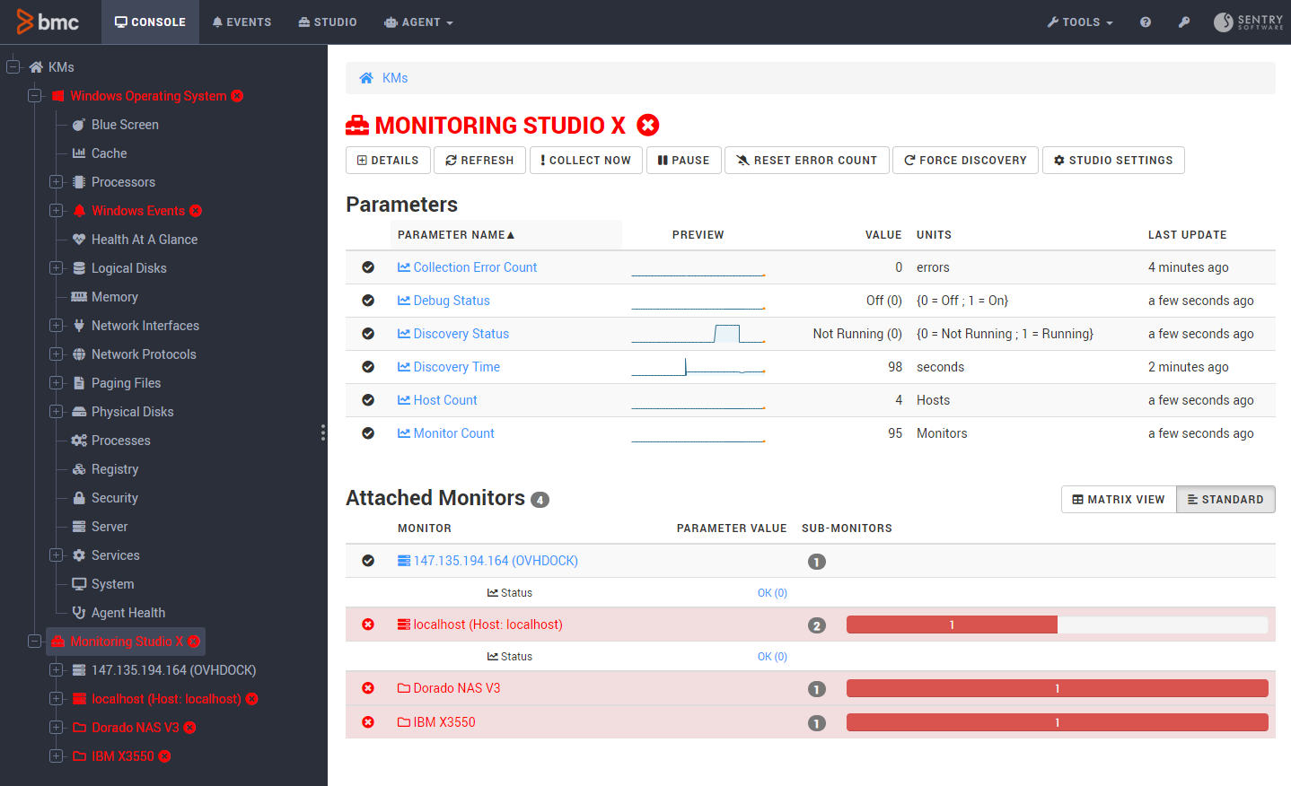 Monitoring Studio X is the newest generation of our well-known monitoring solution. This fully redesigned version has been developed with the most popular front-end and back-end technologies (SPA, AngularJS, BootStrap, REST API, etc.). The full-fledged REST API introduced in this version allows you to query and control the PATROL Agent (get monitored instances and parameters, list events, modify the configuration, etc.). Interactions with the PATROL Agent and Monitoring Studio X are now entirely handled through the web-based interface making configuring, managing and troubleshooting operations intuitive and reliable.