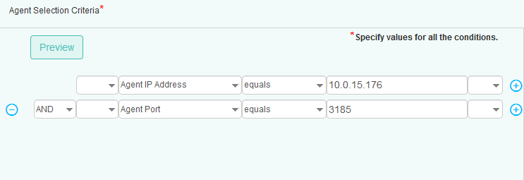 - (Optional) To add more than one condition (example: Agent Port), click the