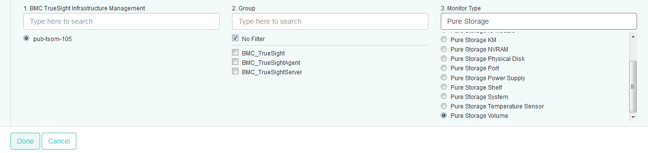 Select the Monitor Type for which you want to create a graph. In our example, Pure Storage Volume